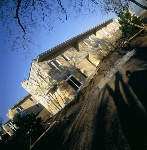 A természet erői által formált helyszínen a tereppel, a domborzattal való azonosulás volt a szándék. Barlangokkal átlyuggatott budai domboldalon épült a húsz lakóegységből álló beépítés. Hét darab két-négy lakóegységet tartalmazó sávba rendezve tapadnak a tömegek a szintvonalakhoz.